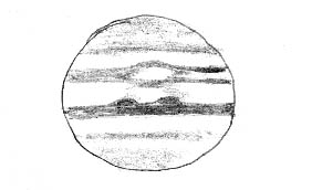 The night of 2004 March 10/11 was exceptionally clear with good seeing, rated at 7 out of 10. I was able to see more detail on these planets than I have seen before. In the case of Jupiter, there were hints of considerable fine detail not shown in the drawings. I am not an artist: the disks were drawn free-hand. I have difficulty getting proportions right.