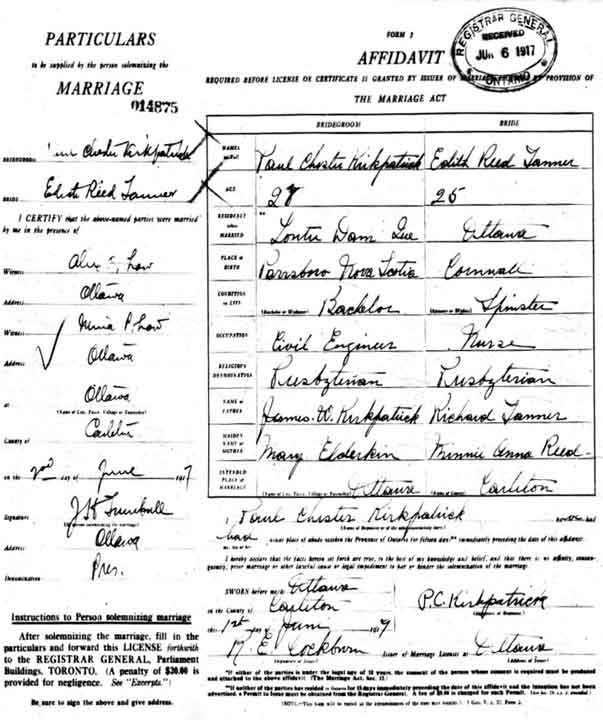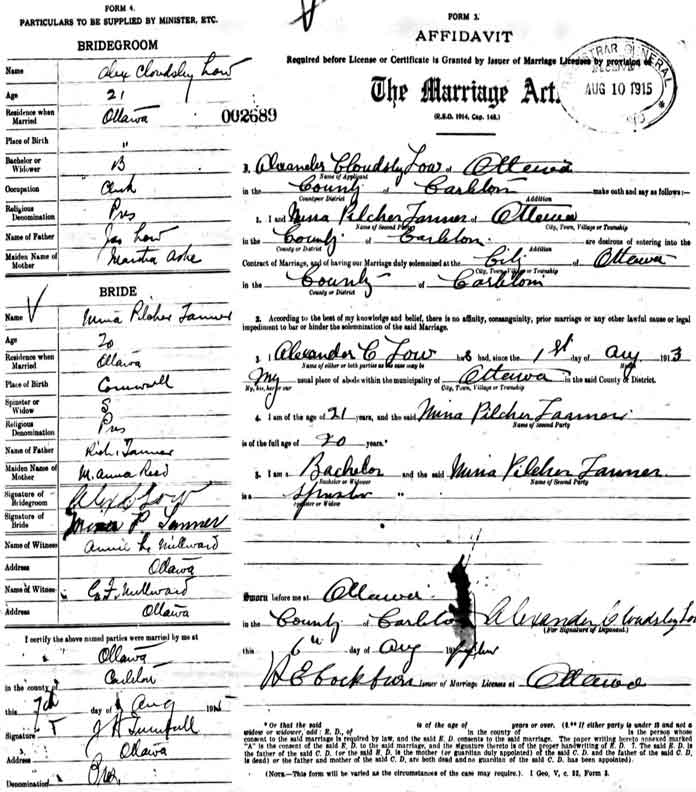 1915 August 7. They had one son, James Reed Low born at Ottawa 1916 April