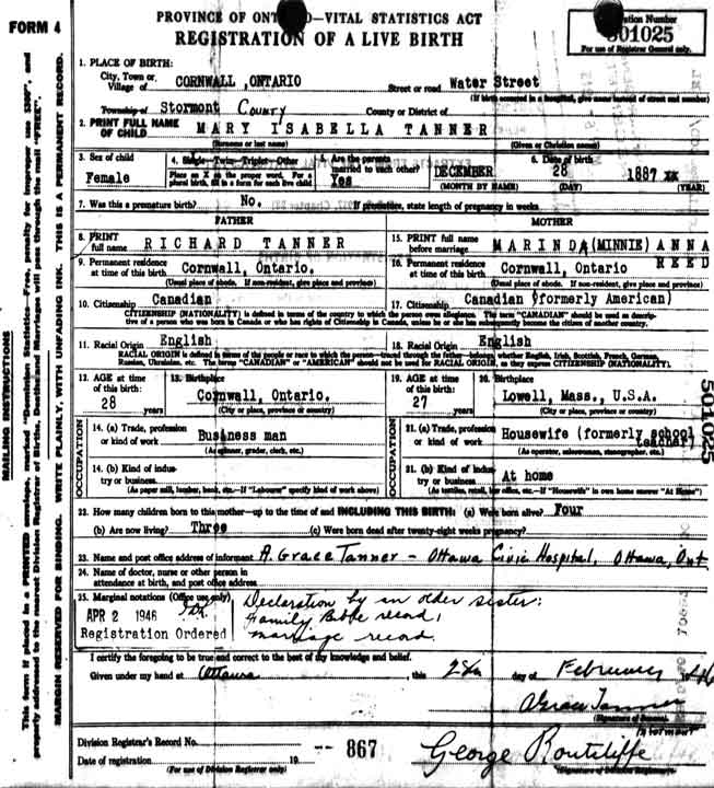 Ontario 1894 December 5. She moved to Ottawa with her family