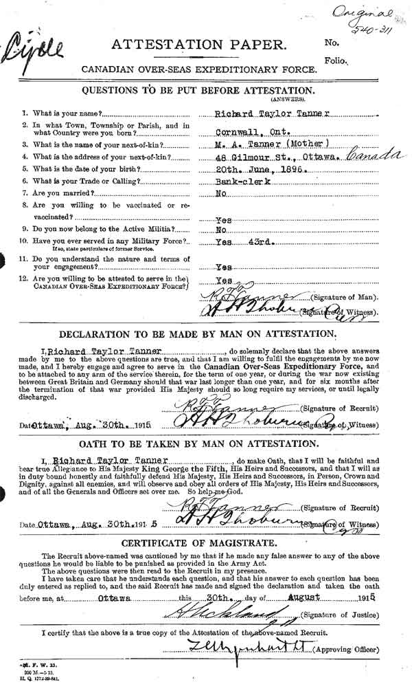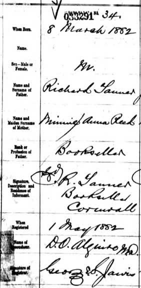 Taylor (sometimes Dick) was born at Cornwall 1896 June