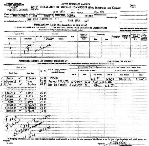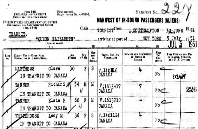 New York in 1945. Husband and wife were on the Queen Elizabeth