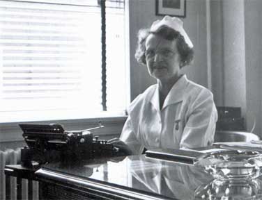 Tot in the office of her employer, Dr. Fisher, 1958.