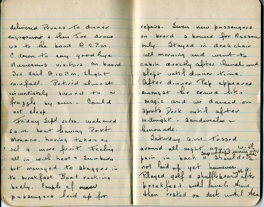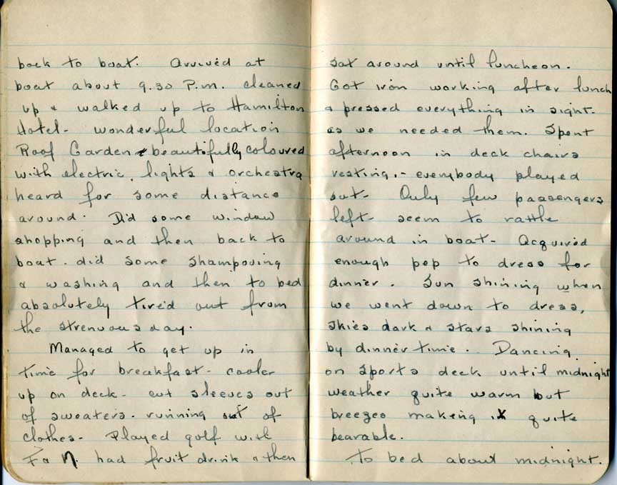 I plan to add more details to this section later, including research on the cruise ship R.M.S Lady Rodney, and pictures she took during the trip.