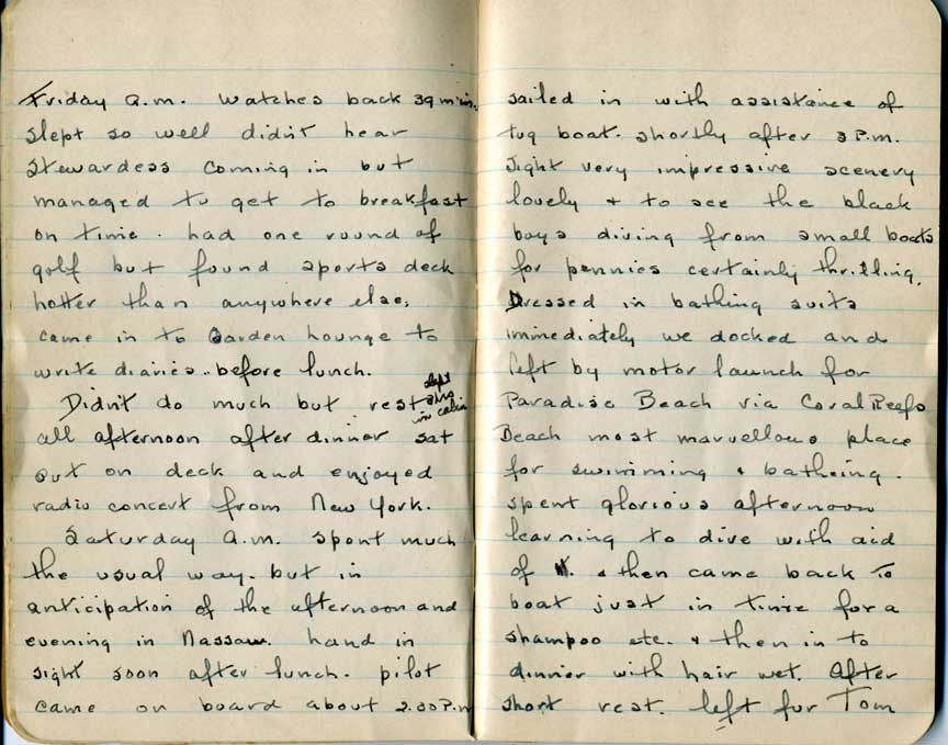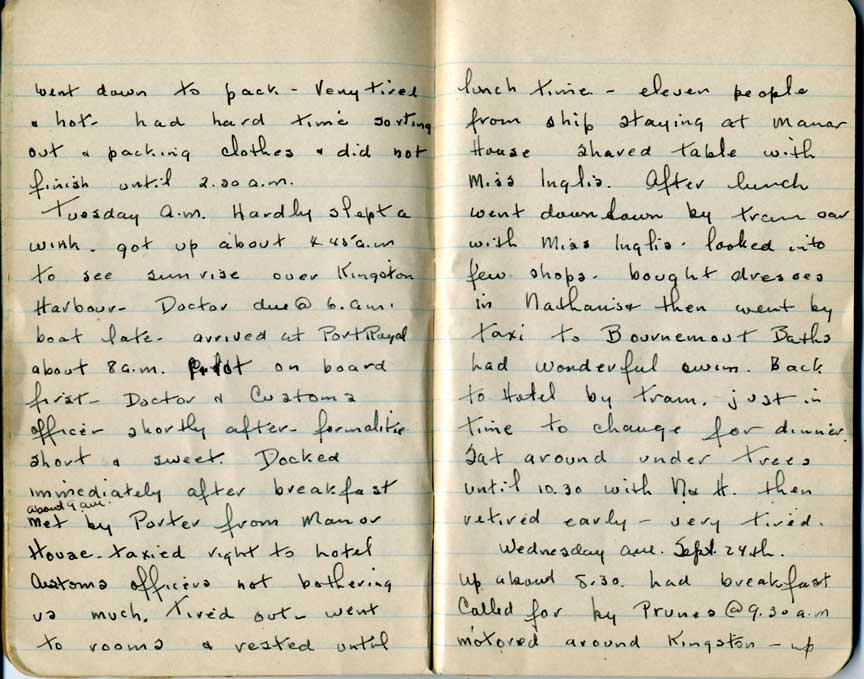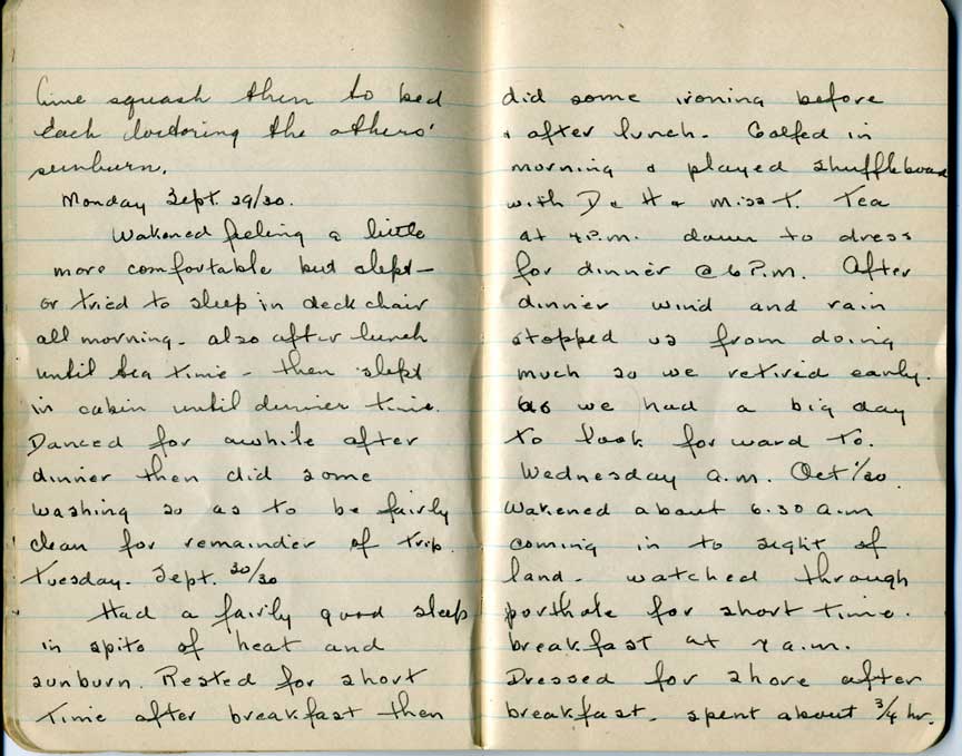 Journal of Hattie Patterson Tanner of her cruise to the Caribbean in 1930.